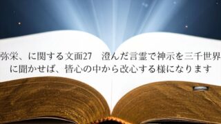 マンデラ・エフェクト文面(2025年6月24日~ 弥栄、に関する文面27 澄んだ言霊で神示を三千世界に聞かせば、皆心の中から改心する様になります 澄んだ言霊(ことだま)で神示よみ上げ、三千世界に聞かして下さい。三千世界に響き渡って神々様も臣民人民様も心の中から改心する様になります。誠(〇九十)知らして下さい。良きキリキリ(キ理キ理)へと進んで下さい。 2025.09.25 マンデラ・エフェクト文面(2025年6月24日~