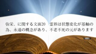 マンデラ・エフェクト文面(2025年6月24日~ 弥栄、に関する文面20 霊界は状態変化が基軸の為、永遠の概念があり、不老不死の元があります 霊界、霊人は、時間の概念がなく、霊的事物の連続、弥栄、状態の変化、が基軸であり、永遠の概念があり、霊界の理解から不老不死の世界を開ける鍵があります。対応の理から、霊人が地上人より遥かに精巧な事は、思念界のやり取りから判ってきます。 2025.09.18 マンデラ・エフェクト文面(2025年6月24日~