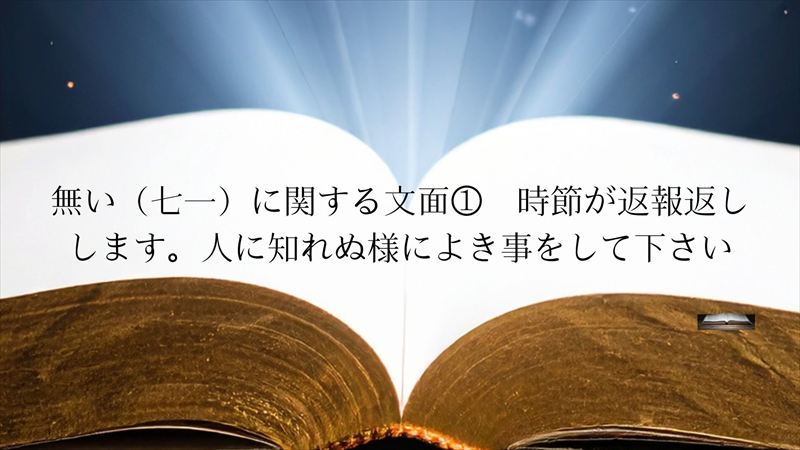 よ(四)き事も現れると帳消しになるので、人に知れぬ様によき事をして下さい。