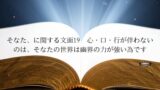 今、できる所から、心・口・行、一致させて進めて下さい。