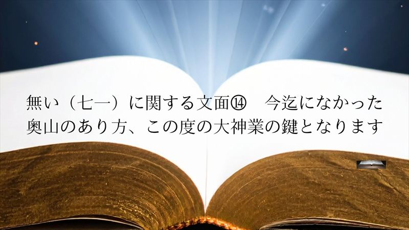 1.補巻 月光の巻 第七帖 今迄になかった奥山のあり方、この度の大神業の鍵となります