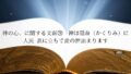 ●今の守護神、悪の血筋眷属であるぞ、悪も御役ながら奥表に出ては誠おさまらんぞ、悪結構な世は済みて、善結構、悪結構、卍(ホトケ)結構、基(ヤソ)結構、儒結構(コトゴトク)の世となりなる神の仕組 近くなって来たぞ。