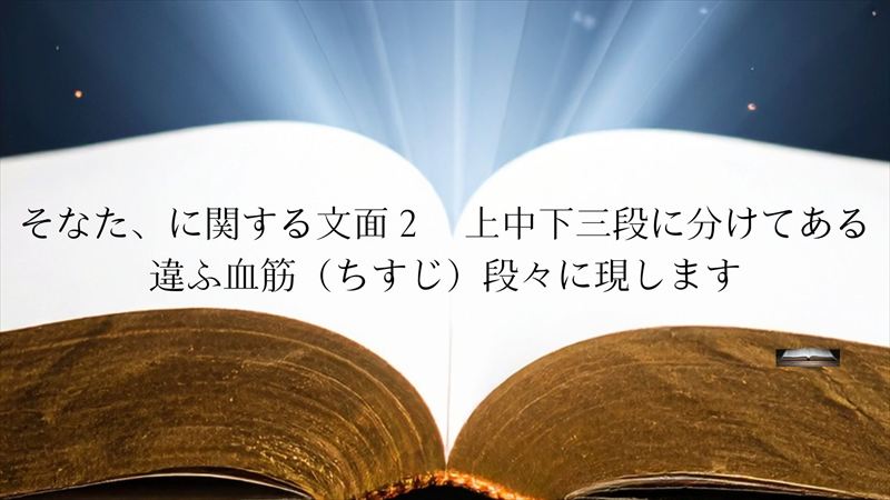今回のマンデラ・エフェクト文面は、上中下三段に分けてある違ふ血筋(ちすじ)段々に現します。