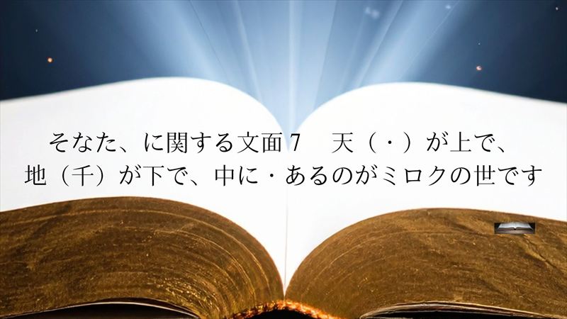 天(・)が上で、地(千)が下で、中に・があります。それがミロクの世、というものです。