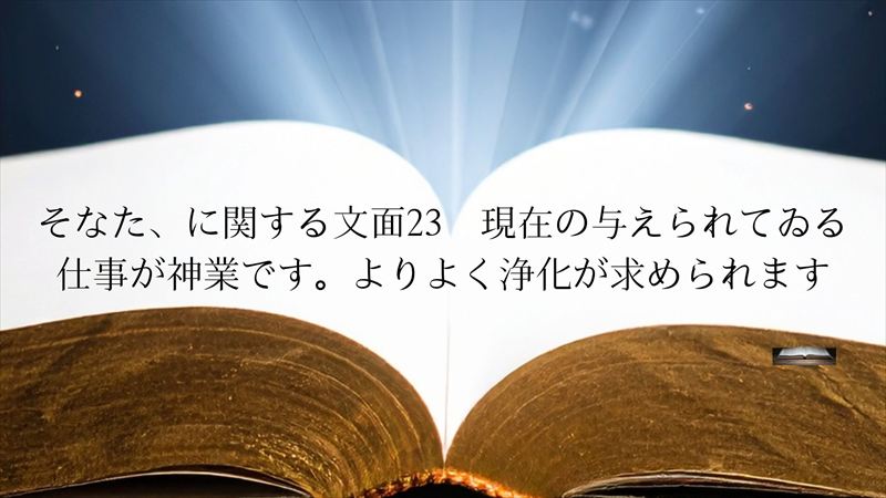 そなた、に関する文面23 現在の与えられてゐる仕事が神業です。よりよく浄化が求められます