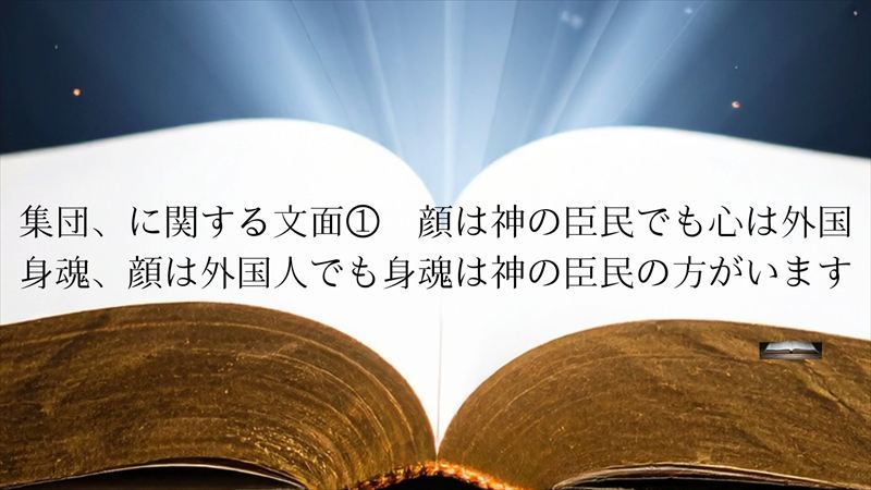 1.上つ巻 第十五帖 顔は神の臣民でも、心は外国身魂、顔は外国人でも、身魂は神の臣民の方がいます。とことんまで行かねば納まらんようになってゐます。