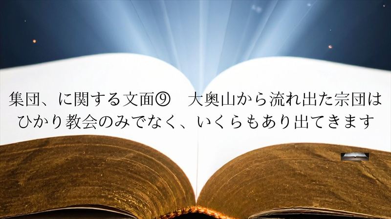 集団、に関する文面⑨ 大奥山から流れ出た宗団は、ひかり教会のみでなく、いくらもあり出てきます