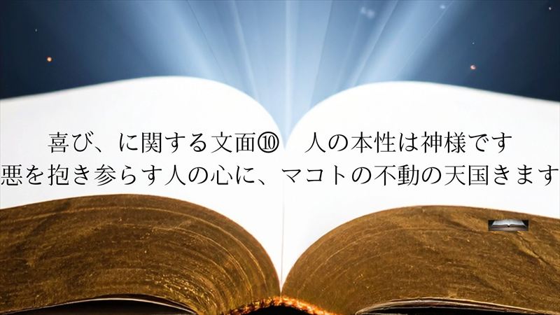 大神様は大歓喜ですから、大歓喜により、悪を抱き参らす人の心に、マコトの不動の天国きます。