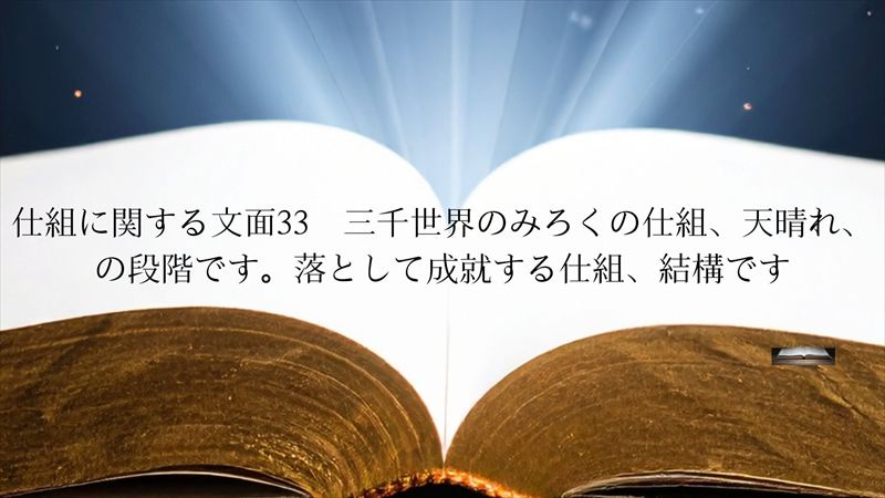 1.黄金の巻(コガネの巻) 第六十九帖 天晴れ、三千世界のみろくの仕組、天晴れ、の段階です。落として成就する仕組、結構です。