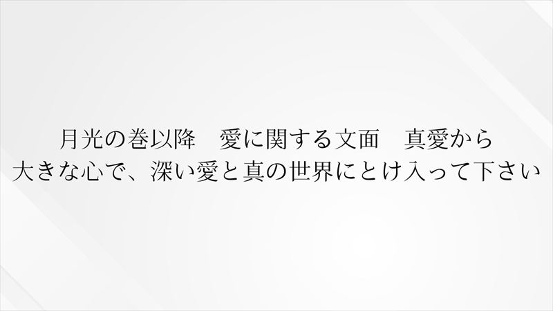 1.月光の巻以降 愛に関する文面 真愛から大きな心で、深い愛と真の世界にとけ入って下さい