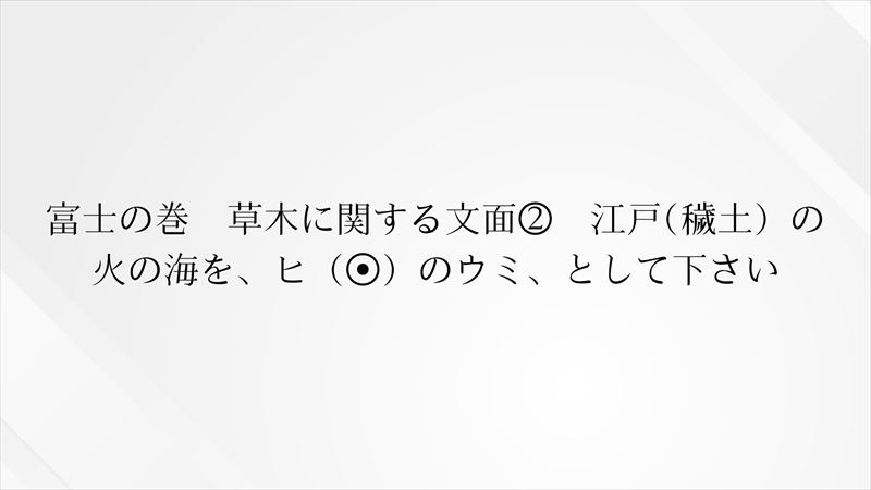 1.富士の巻 草木に関する文面② 江戸(穢土)の火の海を、ヒ(⦿)のウミ、として下さい