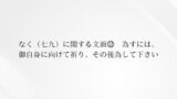 くにつつみ、三が道のキの、根、それがしきまきやであり、ウシトラコンジン様のイワト開きであり、神々様(八)をヒ、永劫の過去から、ほ(九七)して、此の神様、シチニの神様として貯えて下さい。と伝えられています。