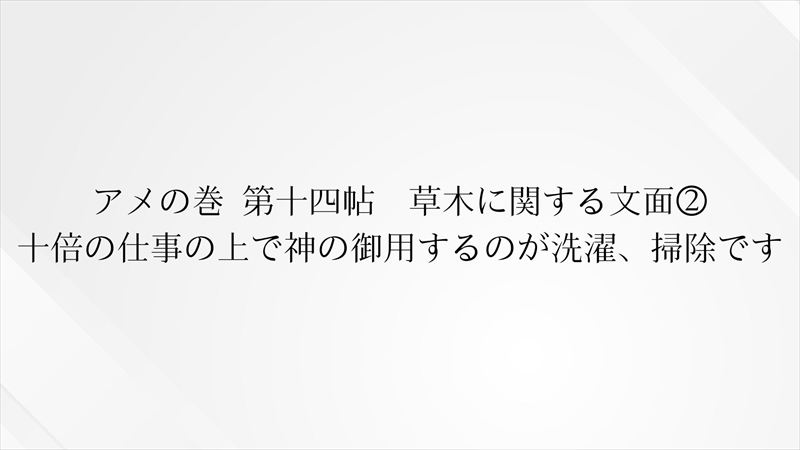 1.アメの巻 第十四帖 草木に関する文面② 十倍の仕事の上で神の御用するのが洗濯、掃除です