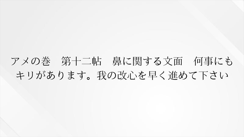 1.アメの巻 第十二帖 鼻に関する文面 何事にもキリがあります。我と心からの改心を進めて下さい。