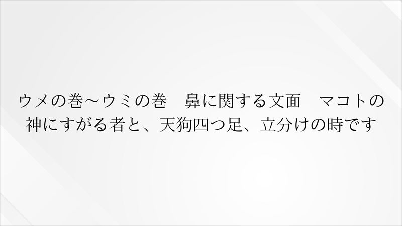 1.んめの巻(ウメの巻)第二十帖 今度 神にすがること出来ませんと、万劫末代浮かばれません。