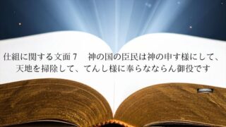 マンデラ・エフェクト文面(2025年6月24日~ 仕組に関する文面7 神の国の臣民は神の申す様にして、天地を掃除して、てんし様に奉らなならん御役です 最後のことは九(こ)の神でないと判りません。この方は天地をキレイに掃除して天の大神様にお目にかけねば済まぬ御役です。神の国の臣民は神の申す様にして、天地を掃除して、てんし様に奉らなならん御役です。仕組通りにさすので、我を去りて呉れよ、としてください。 2026.02.01 マンデラ・エフェクト文面(2025年6月24日~