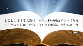 330.まことに関する文面46 根本大神が何故ヌホコのみを与へたまひしか?が岩戸ひらきの秘密。九が答えです
