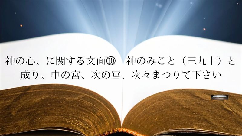 〇つりの巻(マツリの巻)、の方では、一の宮、二の宮等の祀り方につきまして、天明に知らしてあるぞ。ってありますが、いつの間にやら、です。