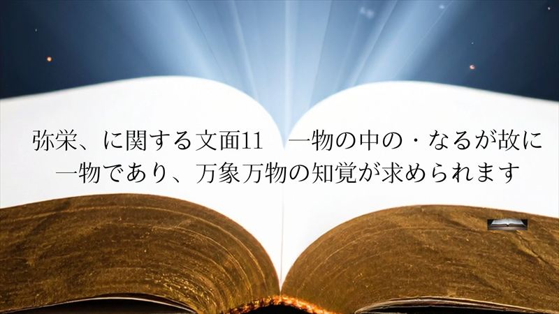 弥栄、に関する文面11 一物の中の・なるが故に一物であり、万象万物の知覚が求められます