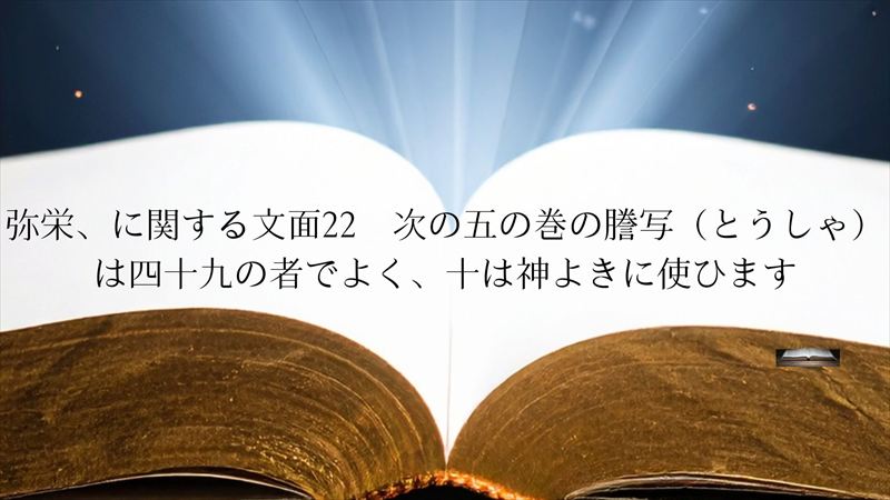 ●次の五の巻の謄写(とうしゃ)は四十九でよいぞ、十は神よきに使ふぞ、前のも十はよきに使ふたぞ、判りたか、