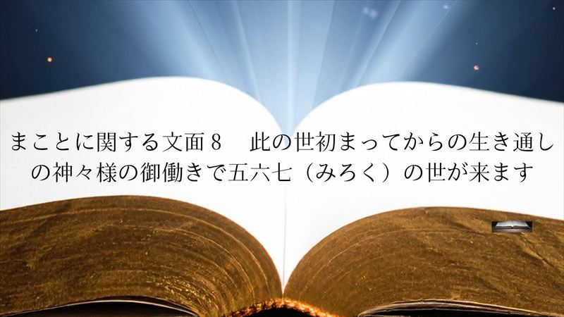 その時より、この世初まってから、生き通しの神々様の御働きによって五六七(みろく)の世が来る、とあります。
