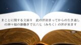 神の国の臣民がまことの神の子ざぞ、今は曇りてゐるなれど元の尊い種植えつけてあるのざぞ、曇り取り去りて呉れよ、と、曇り取り去りてくれよ(九〇四)とする事、しきまきや、くにつつみ、からの改心を望まれてゐます。