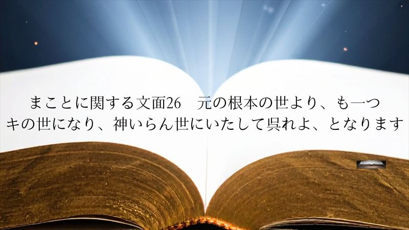 ●元の根元の世より、も一つキの世にせなならんのざから、神々様にも見当取れんのぢゃ、元の生神でないと、今度の御用出来んぞ。