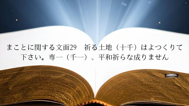 祈る土地(十千)はよつくりて下さい。専一(せんいつ)、平和祈らなならんようになっています。
