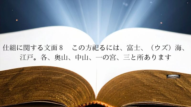 Ⅰ.この方は祓戸(はらへど)の神とも現はれ、この方祀るには、富士、(ウズ)海、江戸、それぞれ三と所、奥山、中山、一の宮、があります。