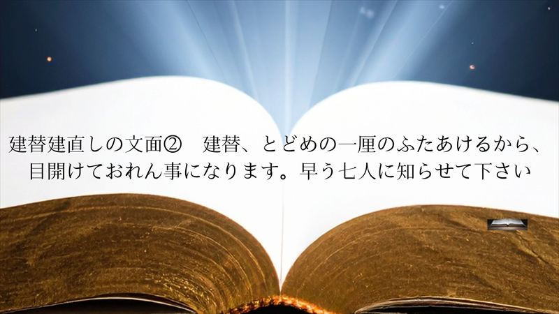 ●建直しの仕組 立派に出来てゐるから心配いたすでないぞ、建替延ばしに延ばしてゐる神の心判らんから、余り延ばしては丸つぶれに、悪のわなに落ちるから艮(とど)めの一厘のふたあけるから、目開けておれん事になるぞ、