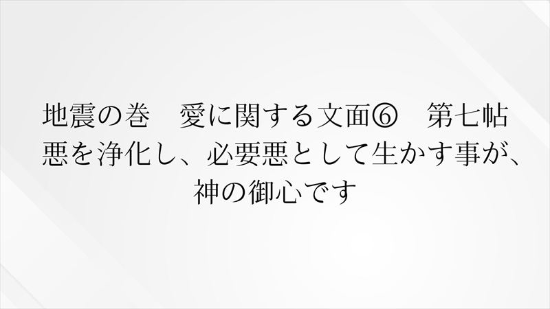 1.地震の巻 愛に関する文面⑥ 第七帖 悪を浄化し、必要悪として生かす事が、神の御心です