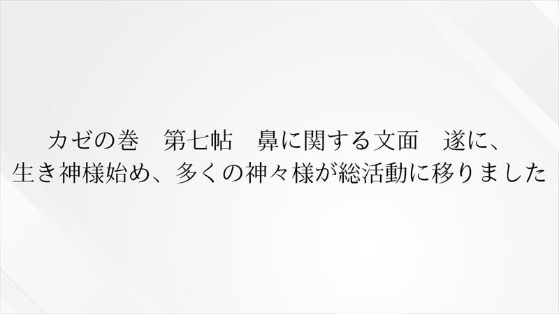 - 1.カゼの巻 第七帖 鼻に関する文面 遂に、生き神様始め、多くの神々様が総活動に移りました